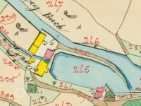 1898 vyvazovací řízení, dosaženo smírné dohody, Václav Skalický má velkostatku zapravit 300 zl. za výmaz povinností mlýna a 60 zl. jako kupní cenu za rybník.