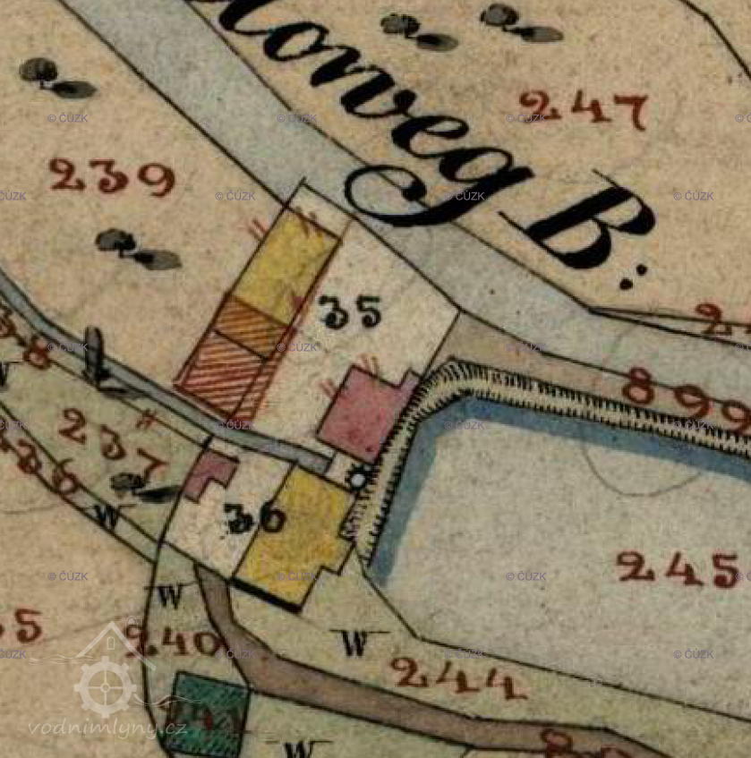 1752 Václav Šrámek, mlynář platí z mlýna dvakrát ročně 25 zlatých pozemkového úroku.