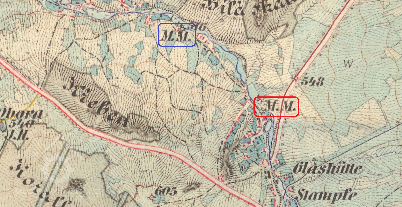 600 m jv od kaple sv. Václava v Mítově