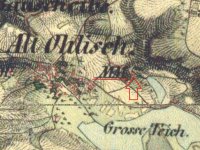 Na originální mapě stabilního katastru z roku 1843 je menší ze dvou rybníků ve Staré Olešce, nazývaný dnes Malá Oleška, zapsán jako Mühlteich. Mlýn stával asi 100 od hráze rybníka, na pozemku s tehdejším číslem 399/2, je zakreslen jako budova ze spalného materiálu.