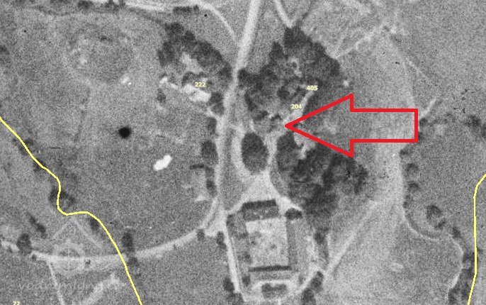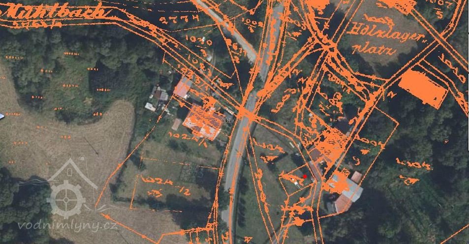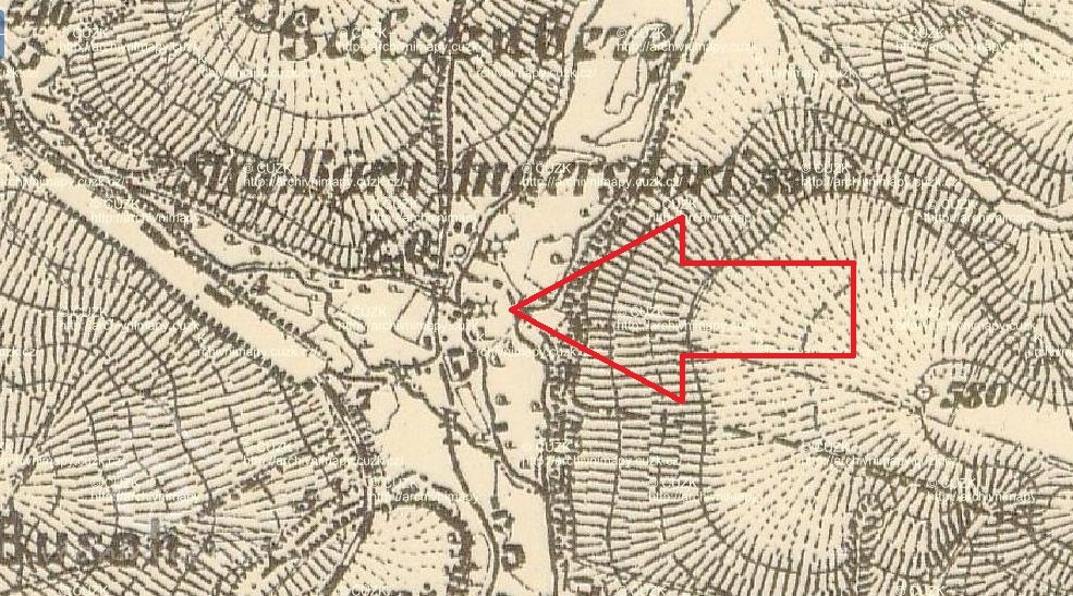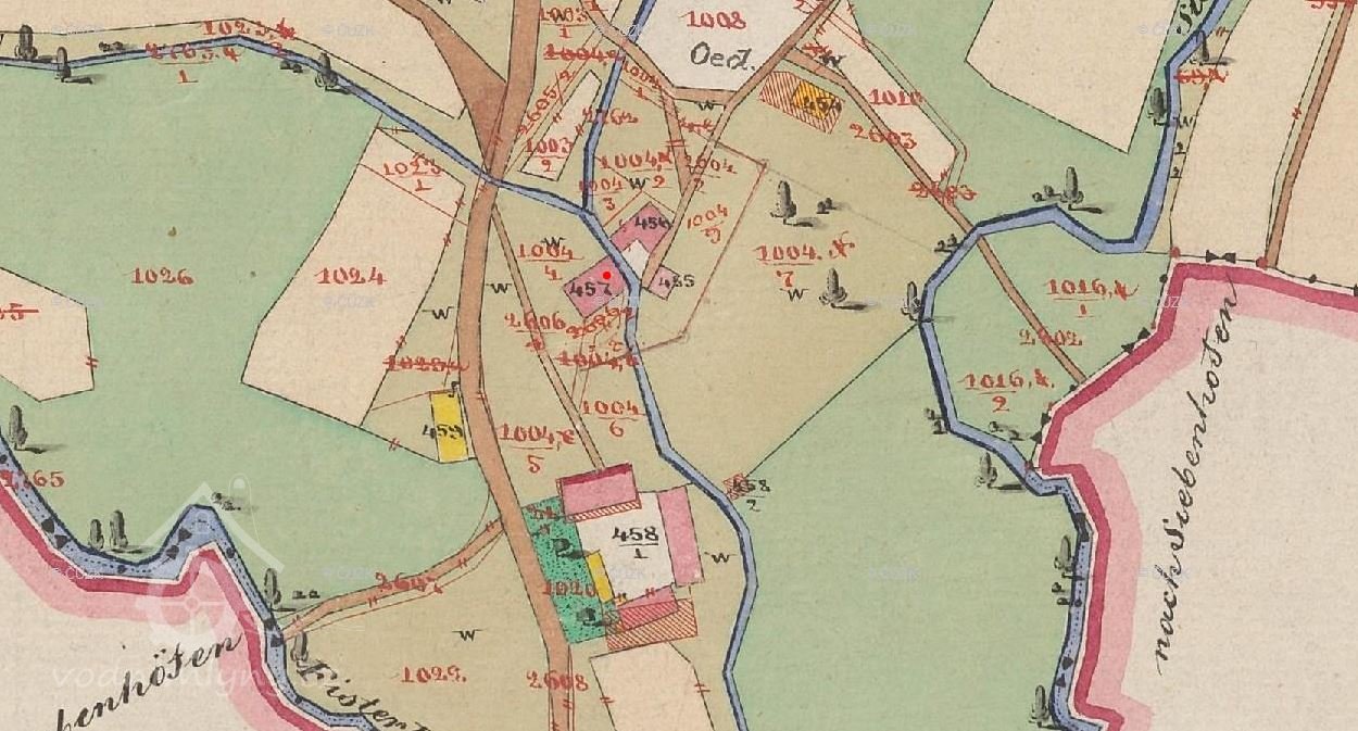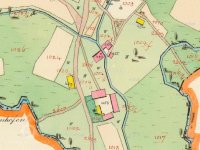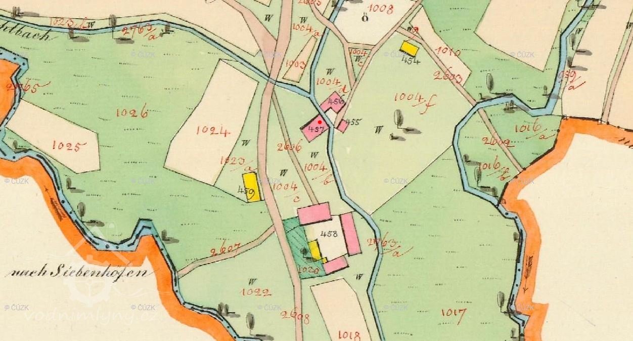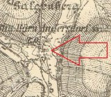 Na katastrální mapě je prostor zařazen jako zbořeniště, ale na jeho místě je dnes zahrada se sadem.