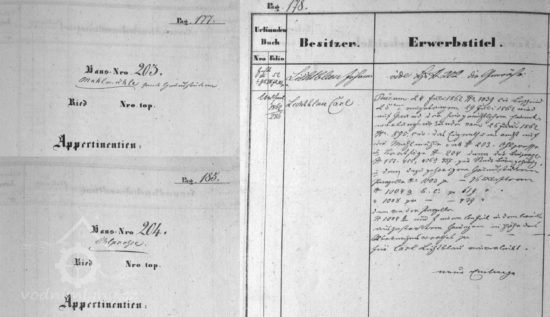V roce 1862 vlastní mlýn čp. 203 a olejnu čp. 204 Carl Lichtblau, hospodářství čp. 202 Johann Lichtblau. Později byla olejna zrušena a mlýn převzal její číslo popisné.