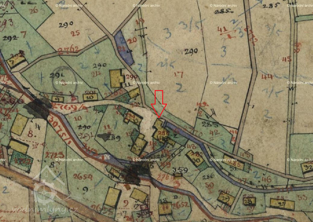 Pozemek byl dlouho využíván jako rekreační zahrada s malou dřevěnou chatkou. Nyní (listopad 2020) stojí na pozemku novostavba rodinného domu. Při úpravách pozemku pro stavbu objevili majitelé dva mlecí kameny, které očistili a plánovali použít jako okrasné prvky na zahradě. Pozemek byl tehdy opuštěný a volně přístupný, oba mlecí kameny někdo během noci ukradl (informace od majitele rodinného domku).