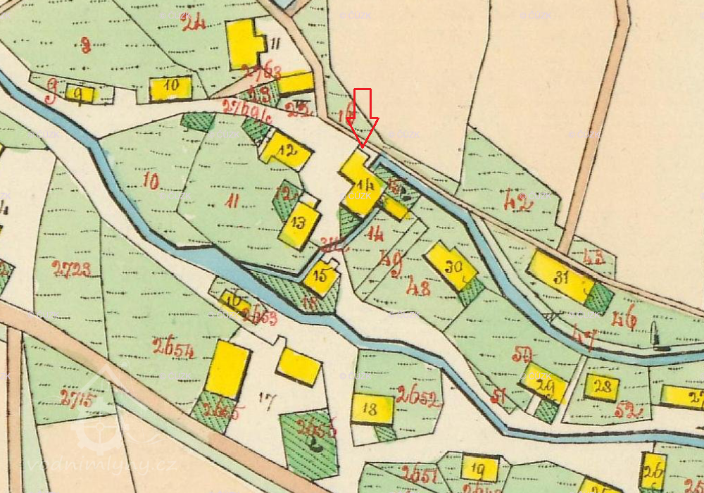 PopisRok 1930 - jedno vodní kolo na vrchní vodu, hltnost 0,064 m3/s, spád 4,8 m, výkon 2,7 HP