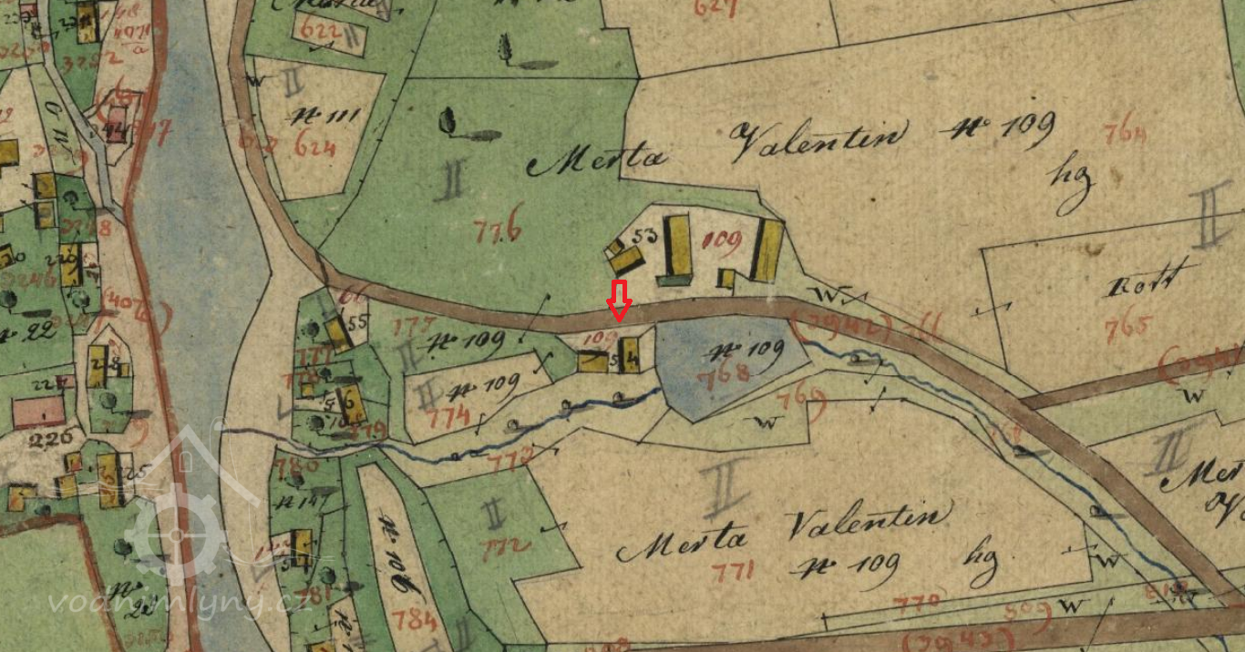 Popis1930: 1 kolo na svrchní vodu, hltnost 0,075 m3/s, spád 3,6 m, výkon 2,25 HP (1,67 kW)