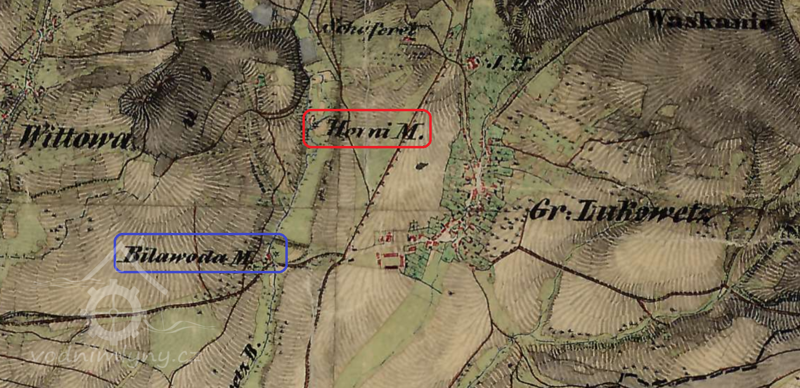 1840 v Lukově 2 mlýny na Bílé Vodě