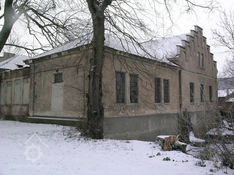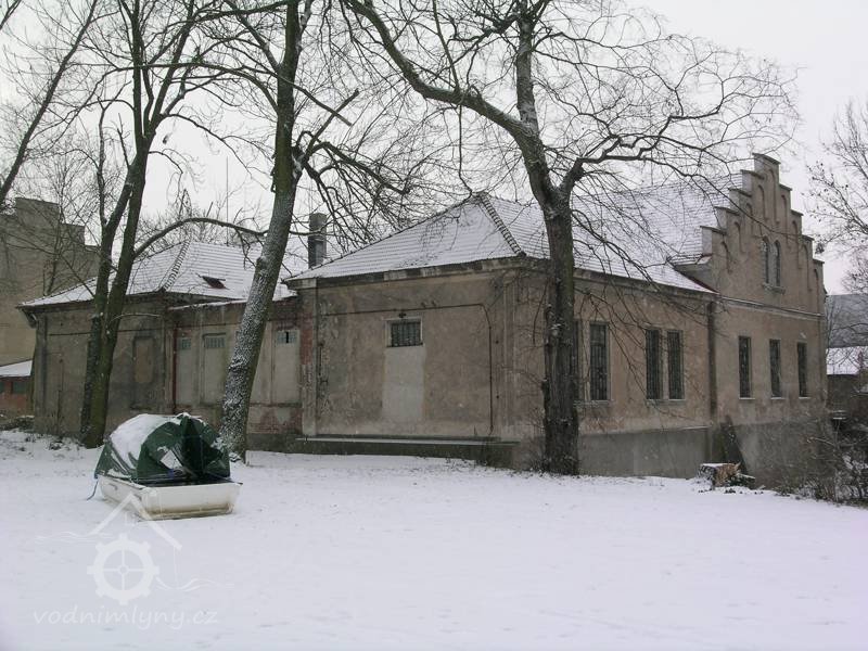 V budově původně vystavěné pro papírnu byla podle výše zmíněného výnosu z r. 1898 instalována v pravém žlabu dvou věncová Girardova turbína o hltnosti 7,4 m3/s a výkonu 80 k, kterou dodala také továrna J. C. Bernard. Poháněla přes transmise celé zařízení válcového mlýna, instalované ve 4 podlažích v severní, kratší části budovy čp . 1 c. V levém žlabu dále pracovala turbína pro vodovod do Líbeznic a zbývající dva prostřední žlaby byly používány jako jalové. V severní části  budovy měl mlýn vlastní pekárnu, ze které se dodnes zachoval komín. (Martin Čejka)