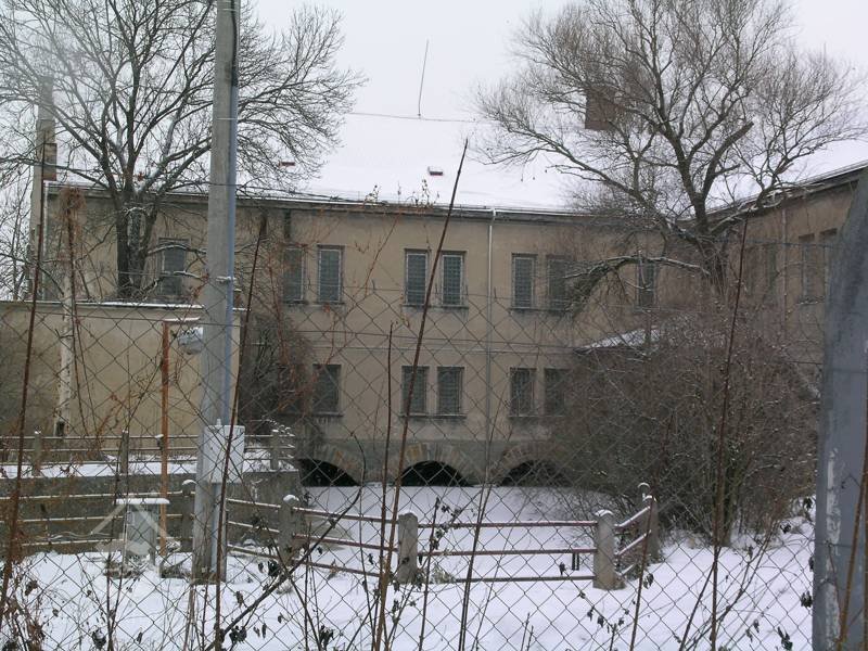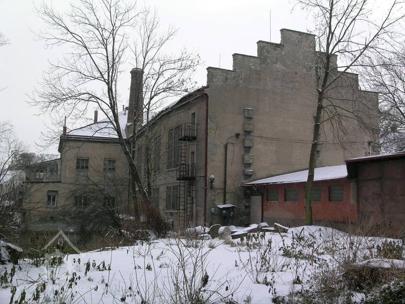 Ve velké budově jsou sklady různých obchodních firem a kavárna.