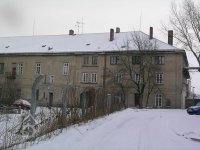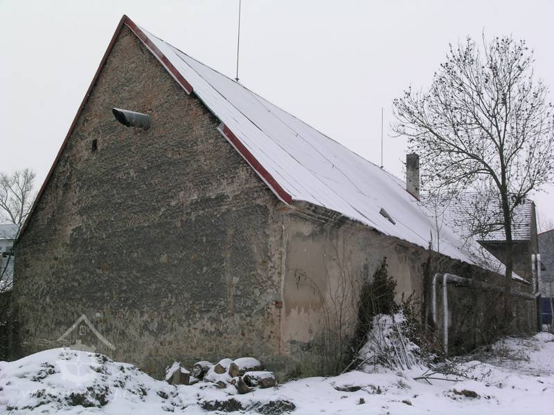 Budova je dvoupatrová. Zbyl komín po pekárně.