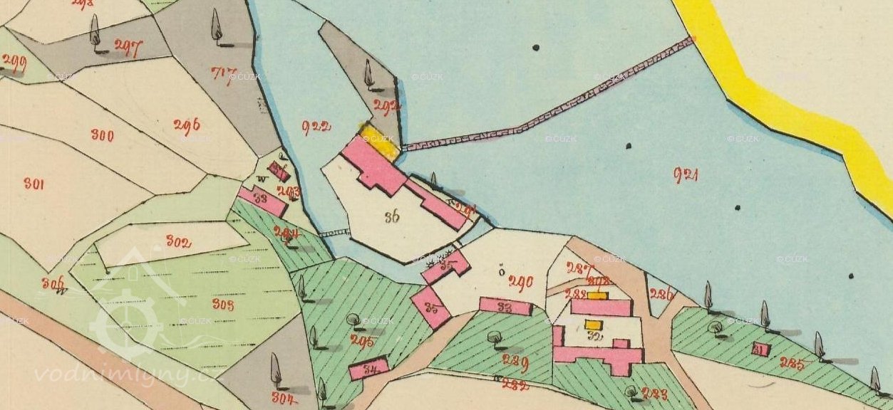 čp. 1 c - Malý mlýn: měl pravděpodobně 2 žlaby se 3 mlýnskými složeními o 3 kolech a pilu, poháněnoujedním nebo dvěma vodními koly.