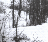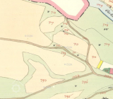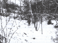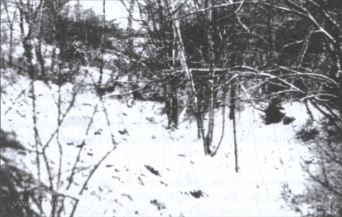 Stopy po trouze a menší prohlubni (akumulační nádržka), velký výškový rozdíl 6-8 m mezi strouhou a potokem.