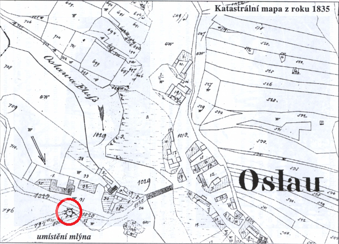 1498 prodal Arnošt z Jemničky a na Studnicích svou dědičnou ves Oslavu a dvůr poplužní menší s mlýnem a řekou
