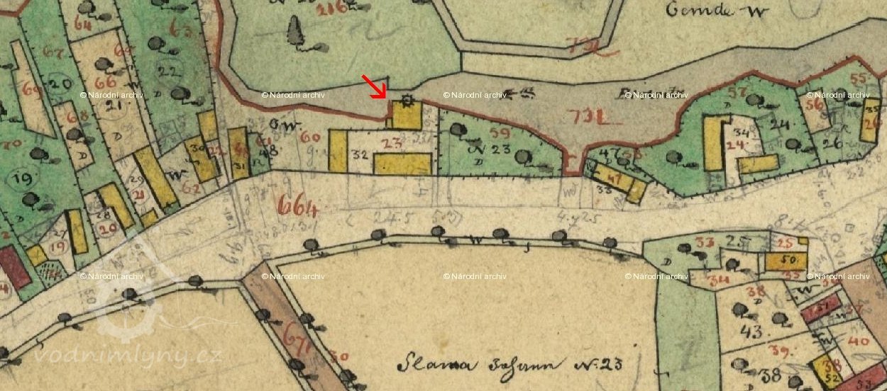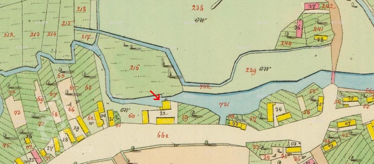 PopisV r. 1930 zde byla Francisova turbína, průtok 0,660 m3/s, spád 1,5 m3/s, výkon 10 k.