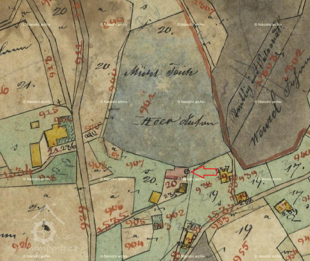 Anton Heer je uváděn jako majitel čp. 20 včetně rybníka nad mlýnem na indikační skice z roku 1843.