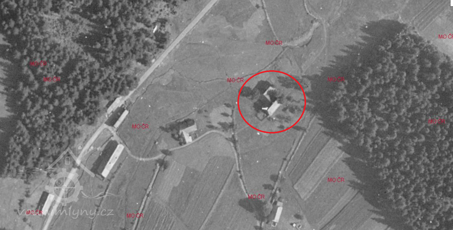 Mlýn stál ještě v roce 1965, ačkoliv všechny sousední budovy již byly v troskách, v roce 1971 však již pouze hromada suti.