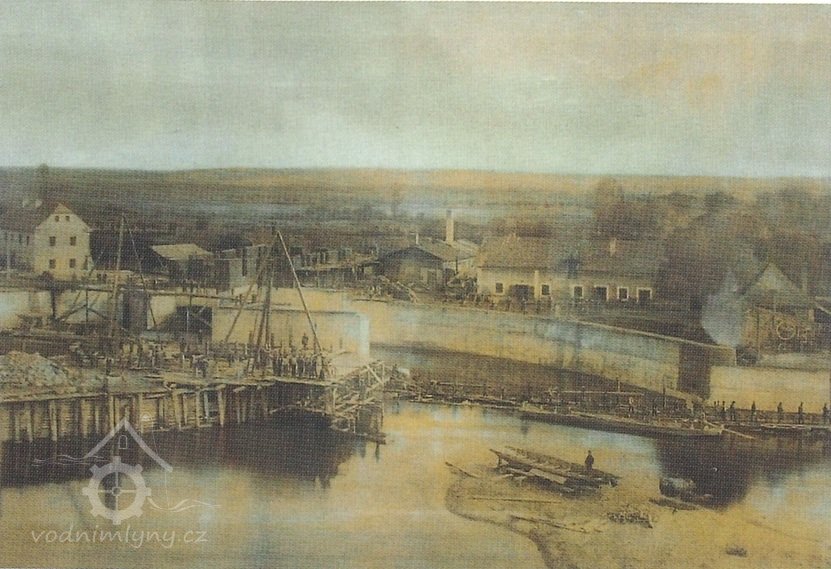 1679 Desky zemské, zápis IV. dílu benáteckého panství Zuzaně Marii Kábové: "Moučný mlýn pod Starými Benátkami, z kterého mlynář odvádí roční úrok 20 str. pšenice, 120 str. žita a 20 str. ječmena. Na penězích 220 zl. Pátý díl úroku patří ke každému podílu. U tohoto mlýna stojí také pila, která je pro všechny podíly společná. Při mlýně je také valcha, z které se odvádí úrok 5 zl. ročně. Valcha je také společná."