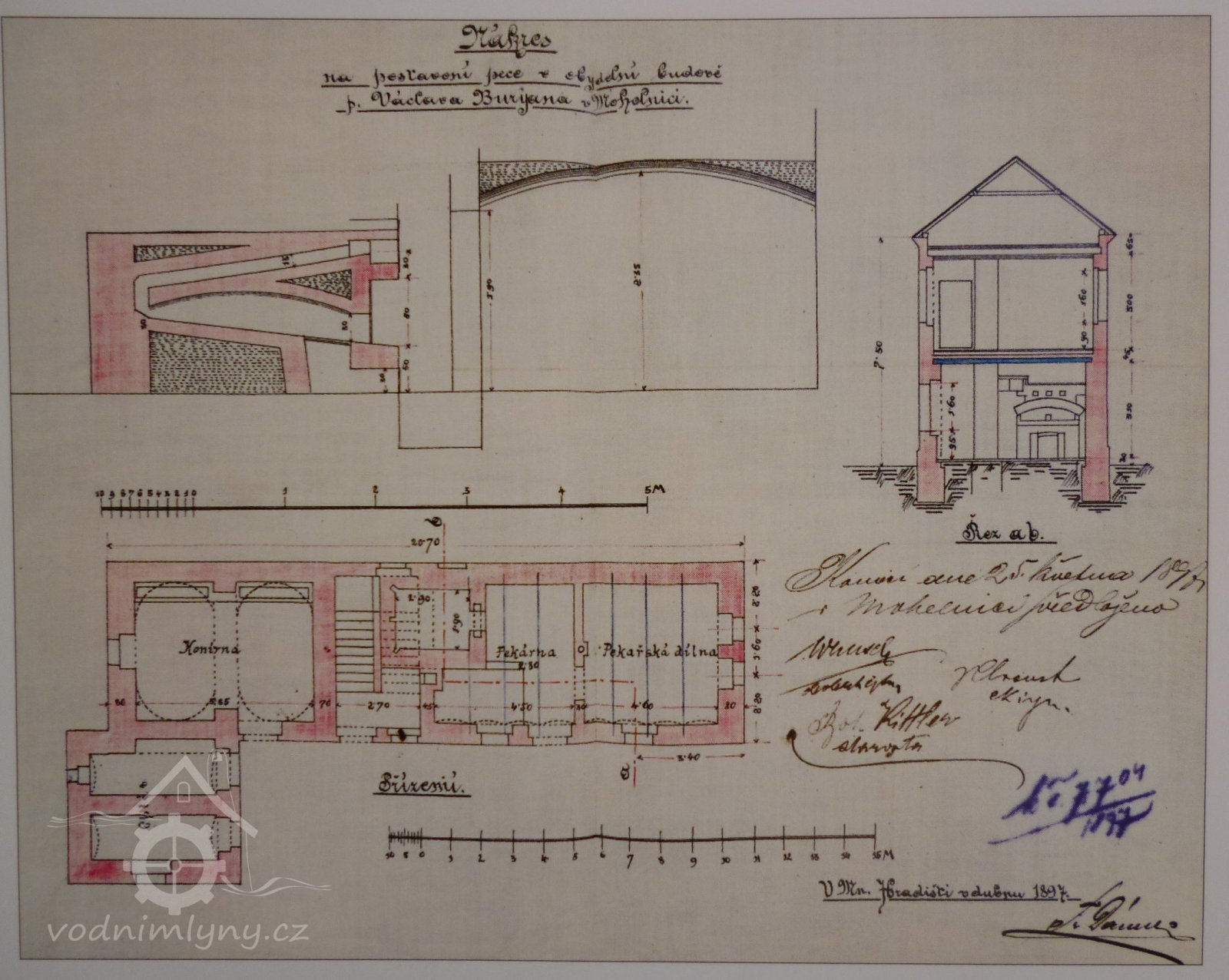 V roce 1895 byl majitelem mlýna Josef Hübner. V tomto roce mlýn zničil požár (jinde uváděn rok 1897). Poškozený objekt koupil od Hübnera v roce 1896 Václav Burian, který dne 14. 10. 1896 seznámil úřady s tím, že se stal novým vlastníkem mlýna a vodního práva. Mlýn obnovil a vybavil mlýnským zařízením ve spolupráci s továrnou na mlýnské stroje Jana Prokopce z Prahy-Smíchova tak, aby odpovídalo moderním požadavkům. Pro pohon strojů sloužila nově Girardova turbína o průměru 1,2 m, maximální spotřebě vody 1200 litrů. Při spádu 2,2 m a účinnosti 75 % dávala turbína výkon 22 HP. Při obnově mlýna postavili také v obytné budově pekařskou pec a zřídili pekařskou dílnu. (MH)