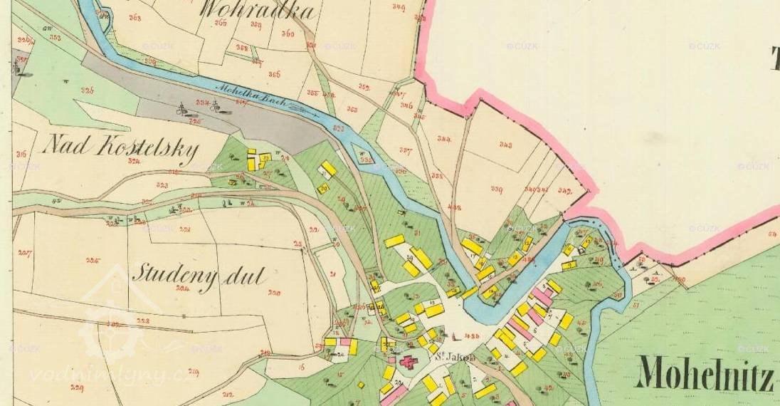 K 16. 9. 1875 je v matrice zápis o tom, že nájemci mlýna v Mohelnici Václavu Eichlerovi a jeho ženě Marii se narodil syn Josef. V 80. letech 19. st. vlastnil mlýn František Eichler. Pravděpodobně to byl bratr nájemce Václava Eichlera. Za Františka Eichlera v roce 1888 došlo k přestavbě jezu na Mohelce a k jeho posunutí o několik desítek metrů výše proti proudu řeky. Komise na posouzení nového jezu se sešla 10. 8. 1888, kolaudace proběhla 20. 12. 1889. (MH)
