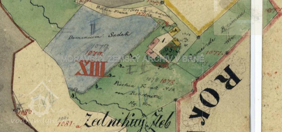 Já Gottfried Antonín svobodný pán z Walldorfu, dědičný pán na Sadku, Rokytnici, Hošťálkové a Brumově, známo činím tímto listem, že jsem já na poníženou žádost poddaného mého mlynáře Jakuba Píši, který svůj mlýn „Píšů“ jmenovaný se všemi přináležejícími rolemi, loukami k panský ruce a mému užívá dobrovolně odstoupil, povolení udělil, aby on sobě při rybníku mým Březovým mlejnec o jednom složení vystavěl, takový i loučku pod tím rybníkem ležící bez překážky mejch erbů a budoucích držitelů tohoto panství jakožto poddaný můj, i potomci jeho, na věčné časy užívati mohli. /Prodat mohli pouze poddaným panství sádeckého se svolením vrchnosti./