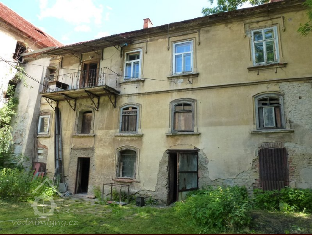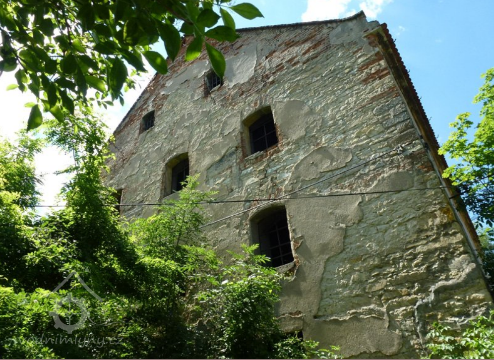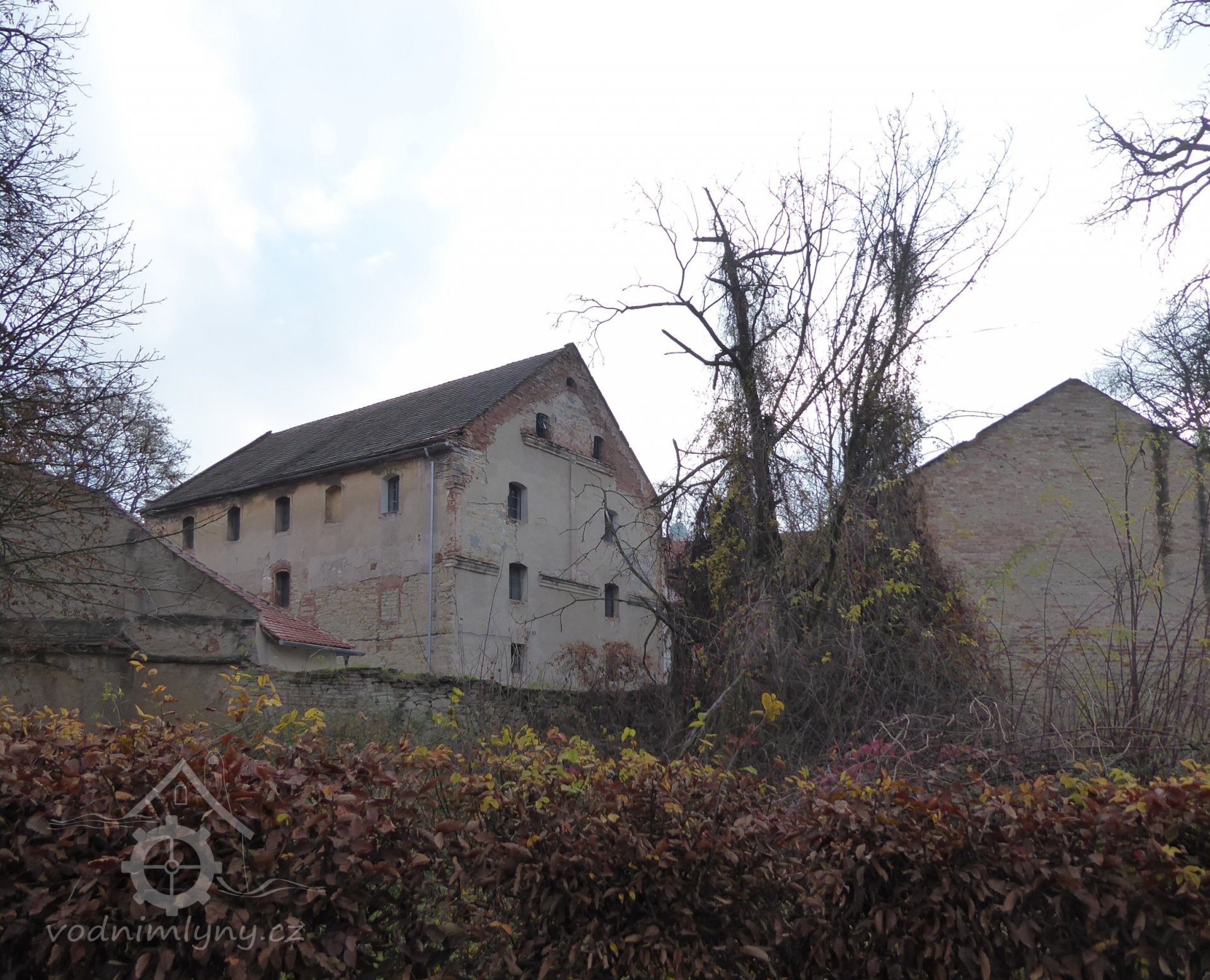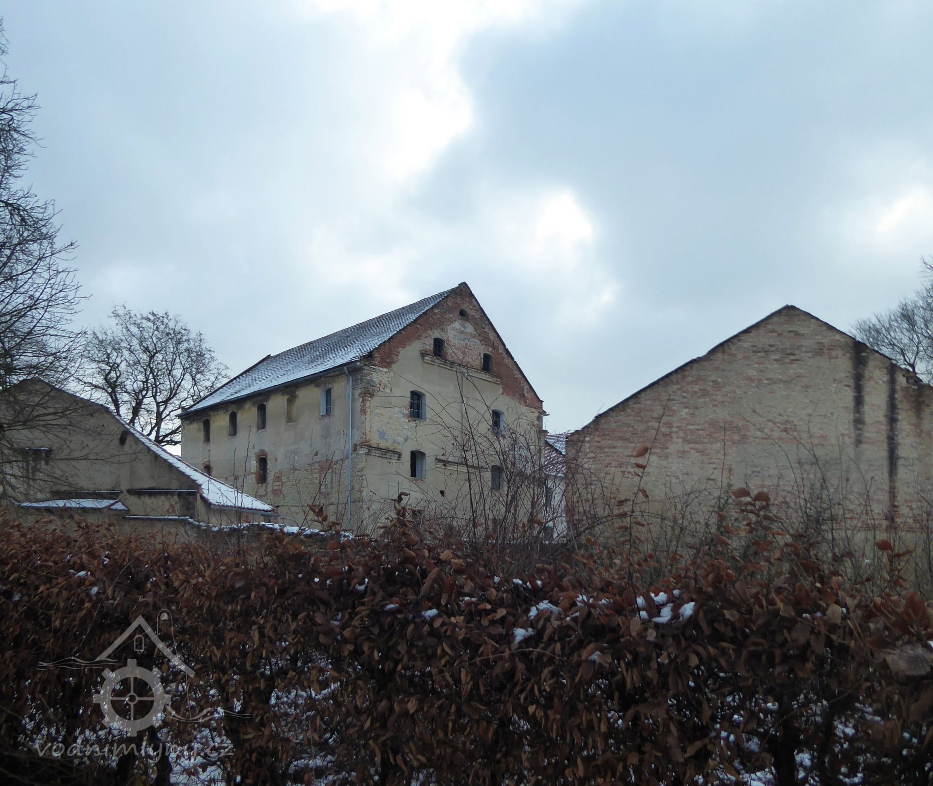 Zchátralá zadní část mlýna, v pozadí dvůr s obytnou budovou, 2015, © Helena Špůrová