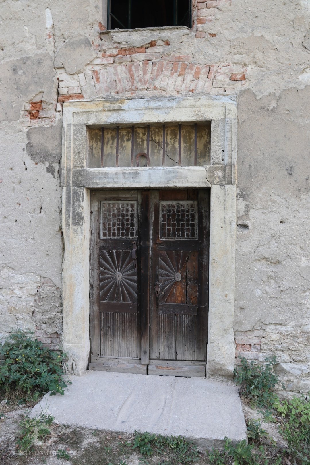 Hlavní vstupní dveře, srpen 2018, © Šimek, (Prvky na obrázku: dveře, kamenické prvky barokní a mladší)