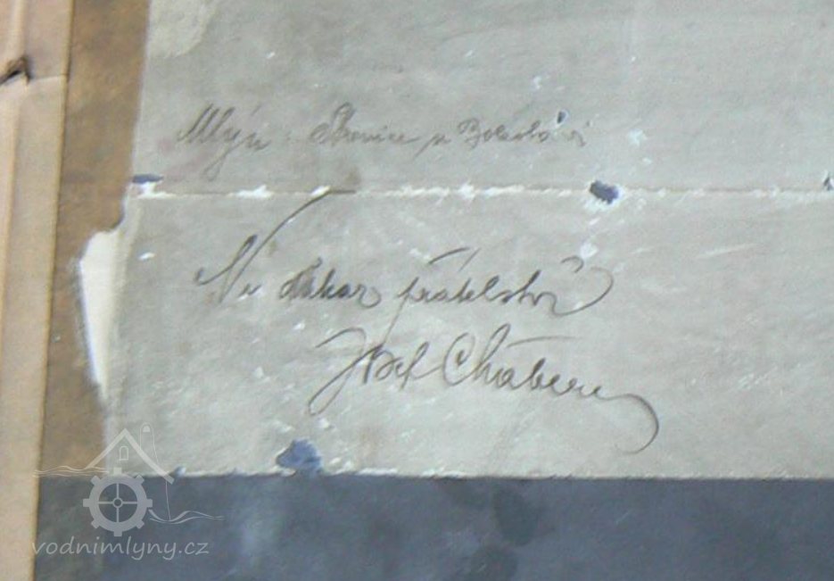 František Dědina hospodařil na mlýně do roku 1893, kdy předal živnost synu Josefovi a jeho manželce Marii. Ten nahradil dvě vodní kola jedním s transmisí, od které byly poháněny všechny mlýnské stroje. Přistavěl místnost s kuchyní pro ubytování chasy. U mlýna byla pekárna, Josef Dědina zvýšil její kapacitu a prodával pak chléb nejen přímo z prodejny ze mlýna, ale vozil ho i do Mšena, kde otevřel prodejní sklad. Skladu ve Mšeně se ujal jeho otec František Dědina, mlynář na výměnku, kde prodával chléb a mouku. (MH)