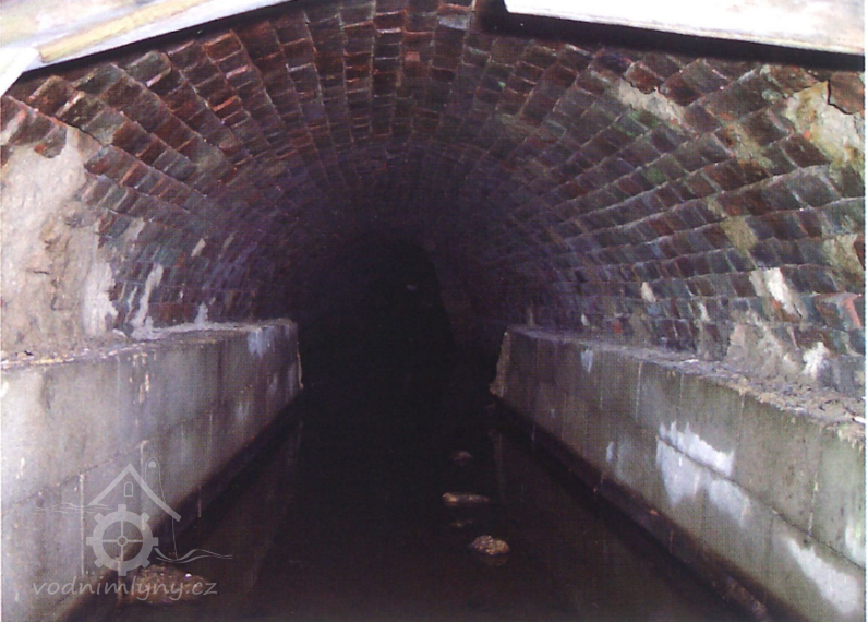 Náhon měl délku 300m. Jím přitékala voda do dřevěného přístavku s vodním kolem o průměru 5,75 m a šířce 82 cm, osazeném na dubovém hřídeli. Od kola tekla voda zpět do potoka klenutým odtokovým kanálem. V roce 1919 bylo vodní kolo nahrazeno Francisovou turbínou. (MH)