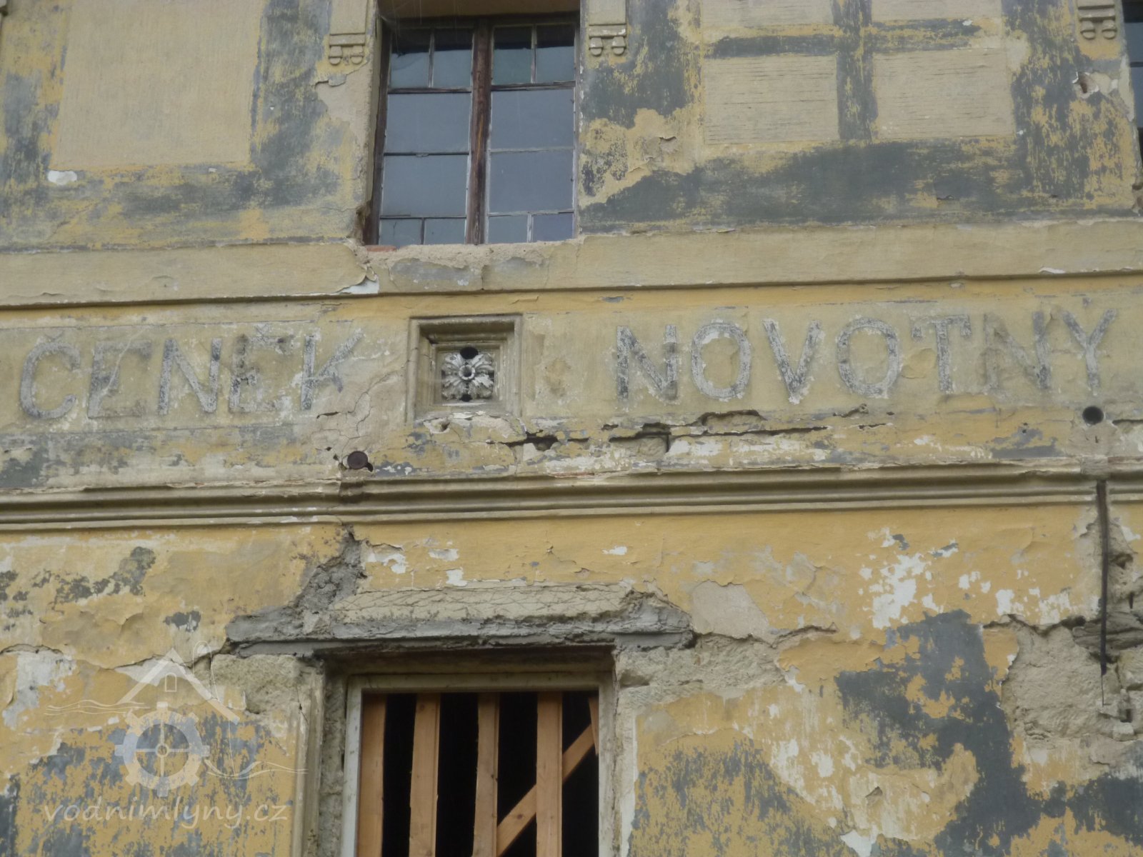Na omítce je nápis: Čeněk Novotný Válcový mlýn a datace ve štítě 1921