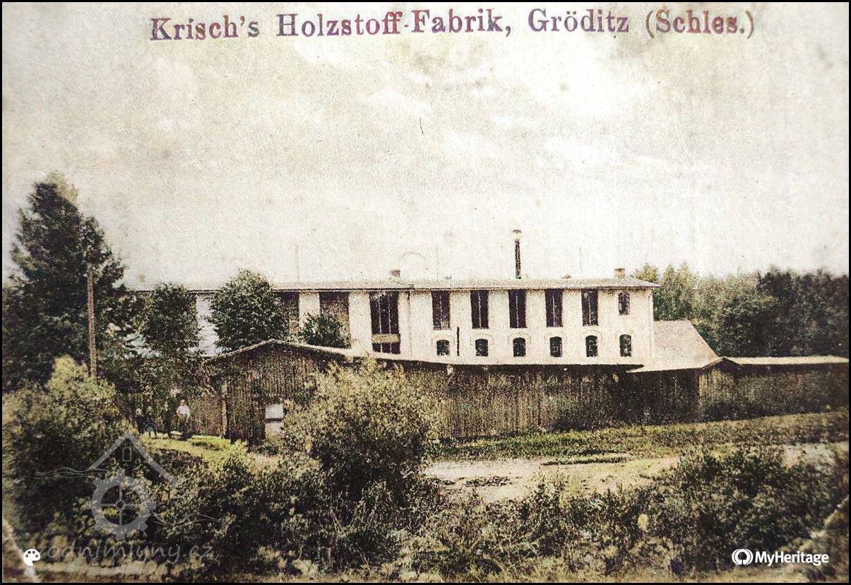 V roce 1930 vlastní továrnu na lepenku a dřevovinu s brusem dřeva M. Krisch.
