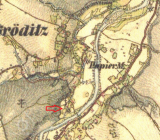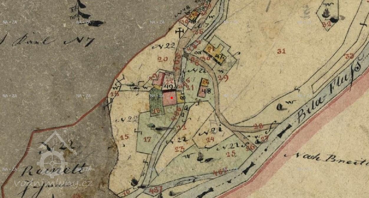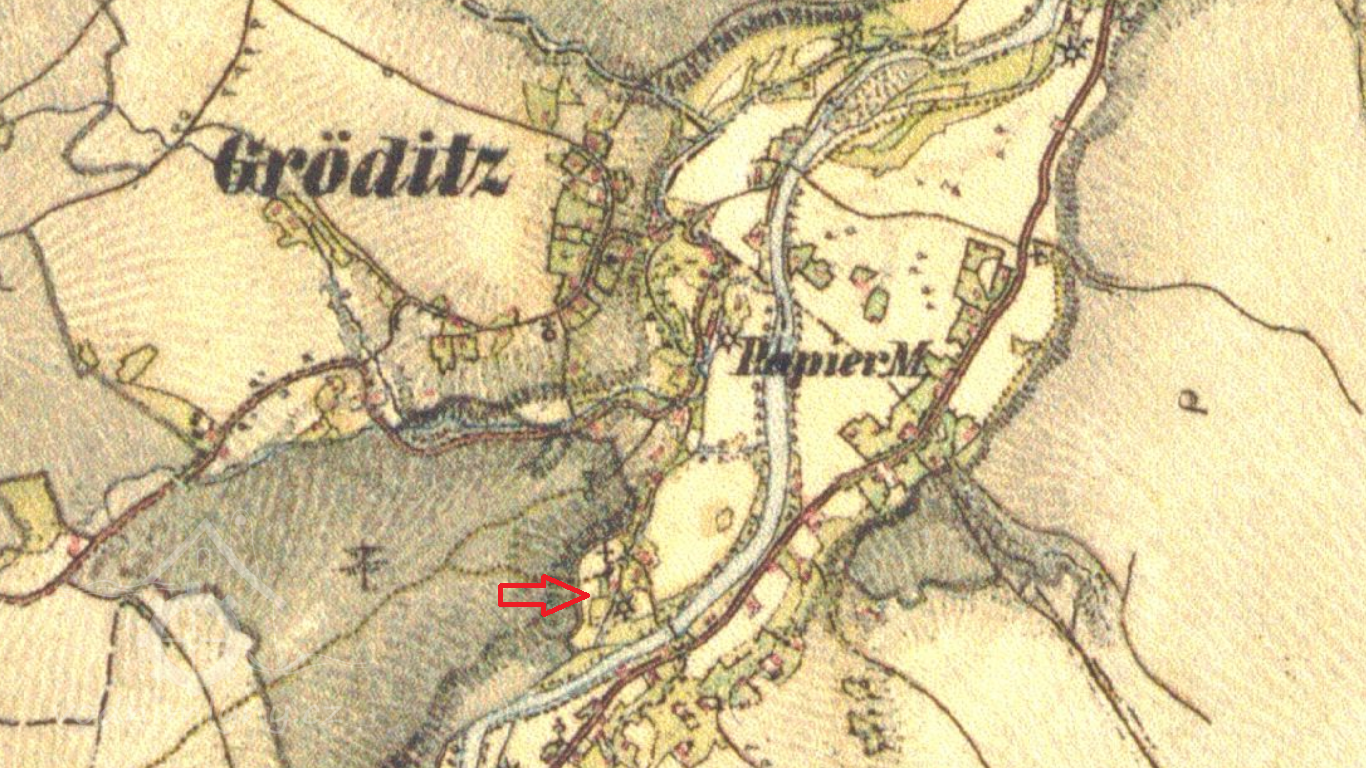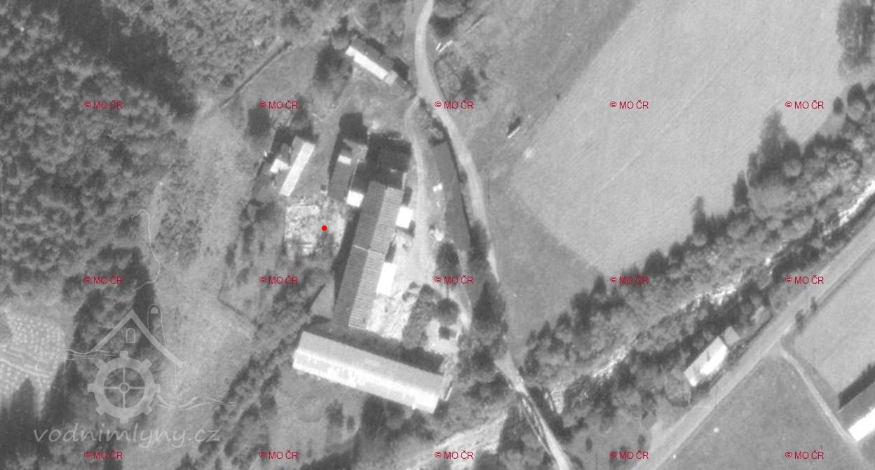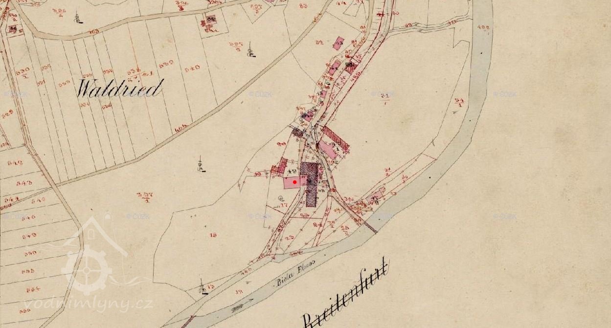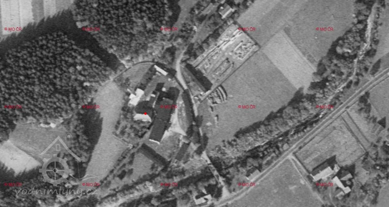 Starý mlýn přestavěný na papírnu, zbořený v 60. letech 20. století.