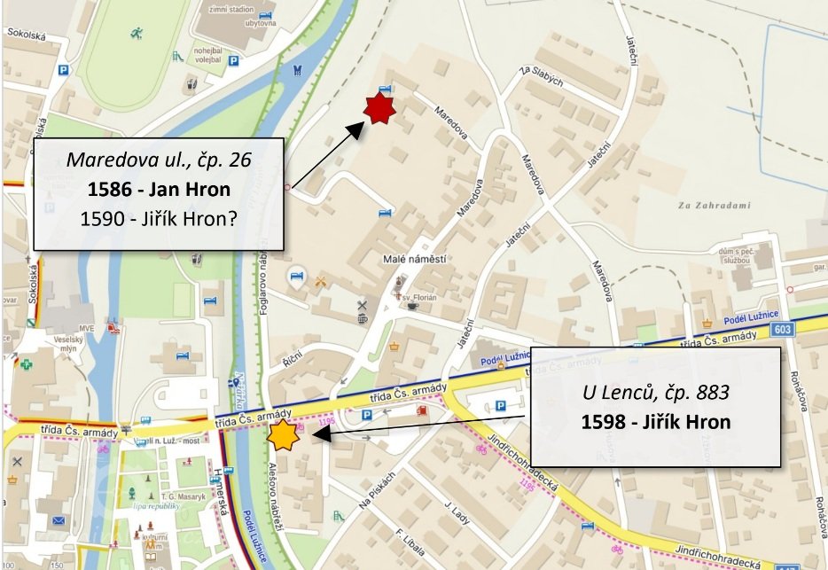 1598 mlynář Jiřík Hronů (viz Dolní Hronův mlýn) patrně se sem přistěhoval až  po rajonizaci