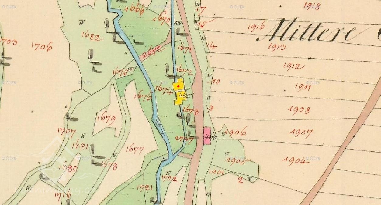Zcela zaniklý mlýn, v 19. století krátce tkalcovna, poté pila zrušená v polovině 20. století. Dnes průmyslovou minulost místa nic nepřipomíná a je zarostlé stromy.