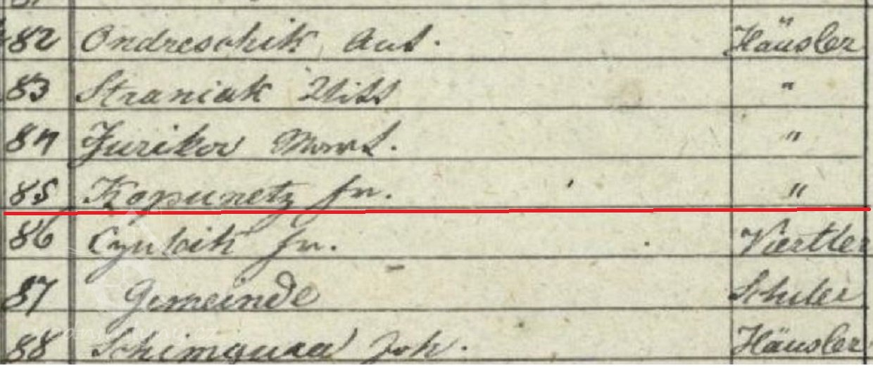 V roce 1828 mlýn vlastní Franz Kopunetz.