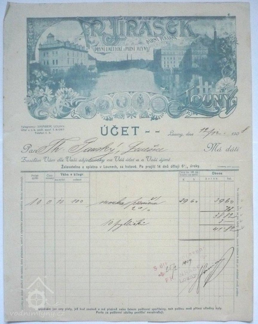 1877 založena firma František Jirásek, první umělecké a parní mlýny v Lounech