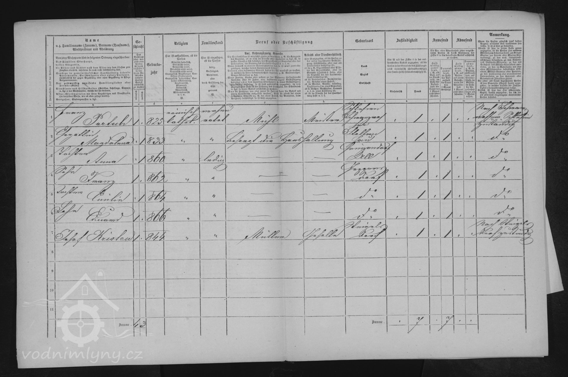 Příjmení mlynářů působících na mlýně: