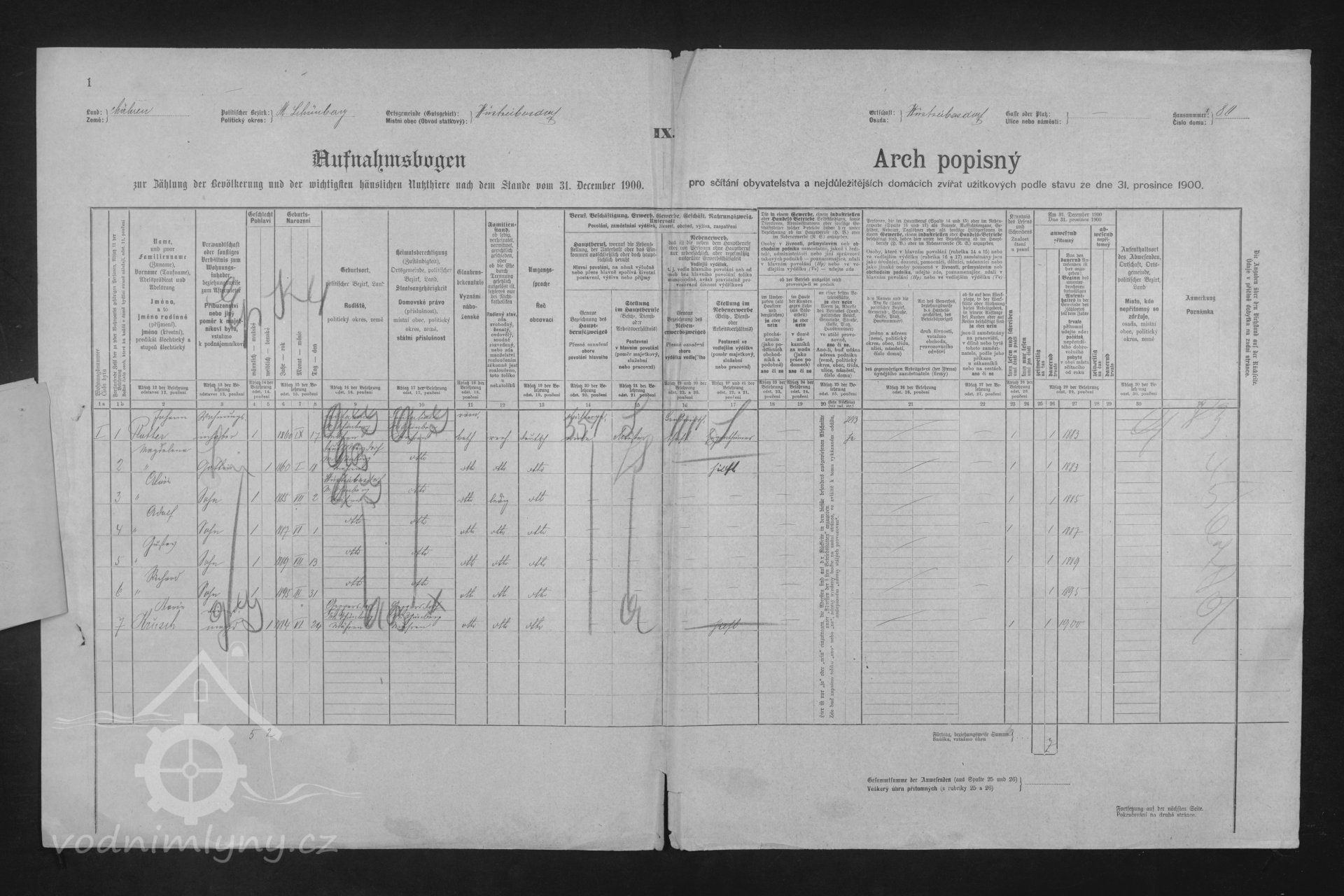 V roce 1890 se v usedlosti čp. 80 mlýn již neuvádí vlastníkem je Johann Rotter (nar. 1860), manželka Magdalena (nar. 1861), .