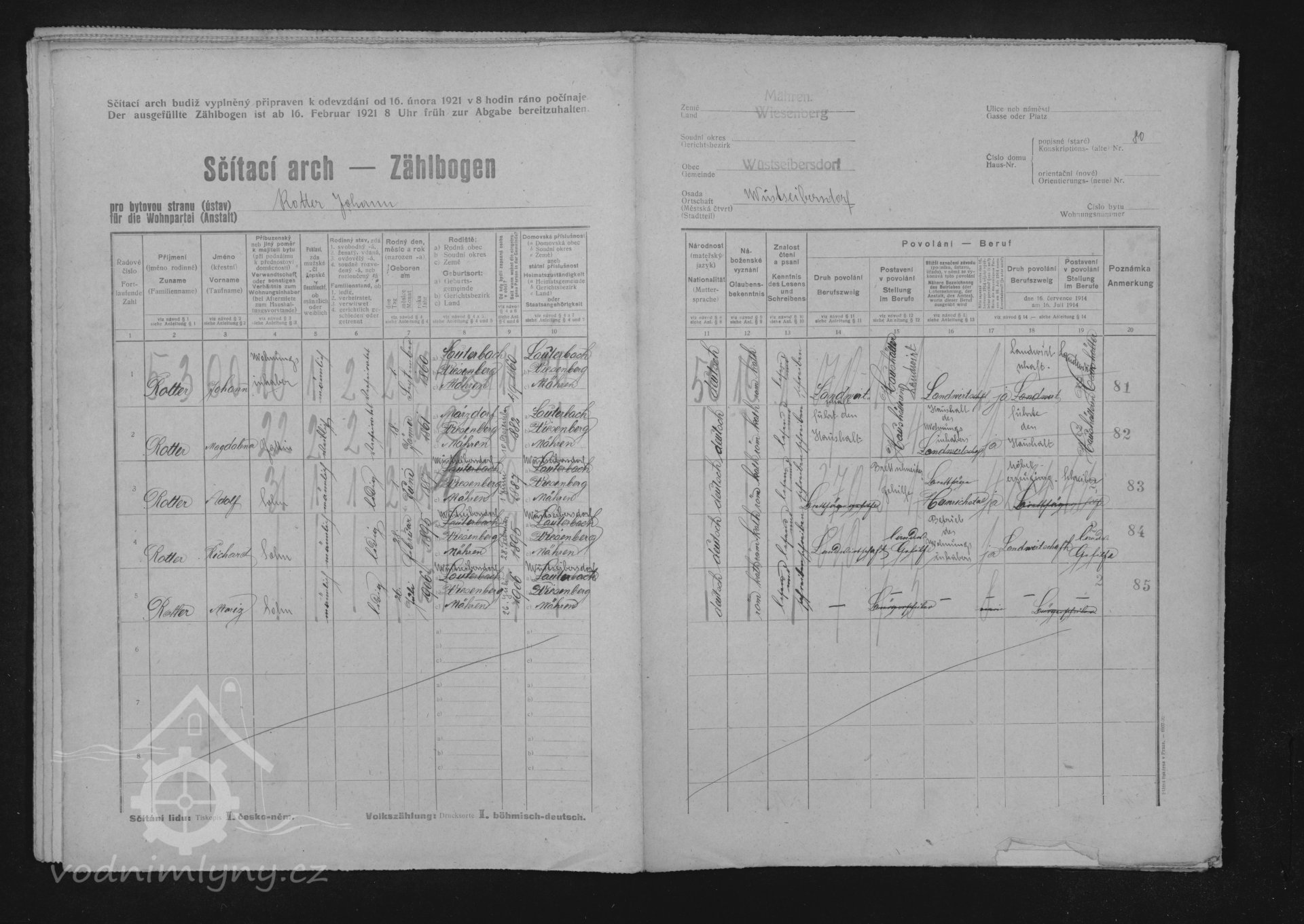 V roce 1921 vlastní usedlosr čp. 80 Johann Rotter (nar. 1860), manželka Magdalena (nar. 1861), děti Alois (1885), Adolf (1887), Richard (1895), Moriz (1906).