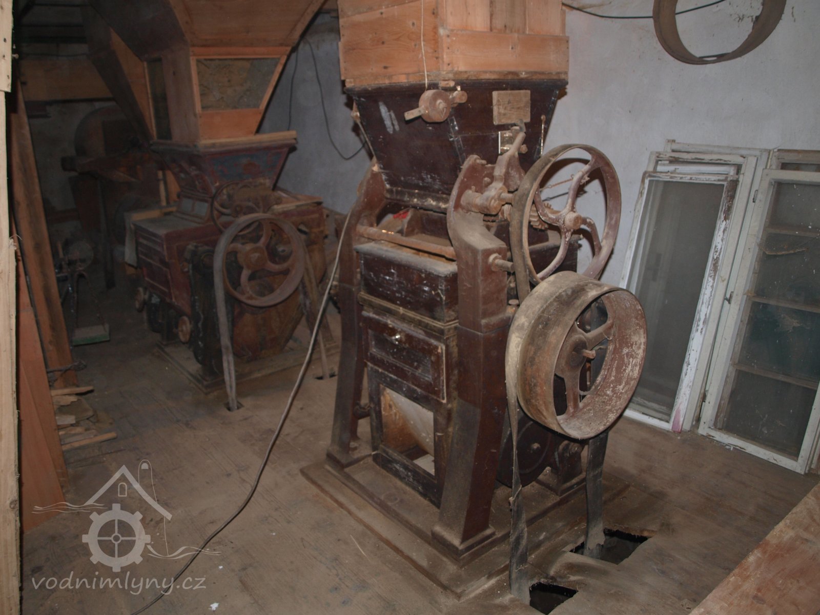 mlecí (válcová) podlaha: válcová mlecí stolice - válce rýhované, archaická v dřevěné skříni, Fa Prokopec - Praha Vinohrady (výroba kolem r. 1885), dvoupárová stolice tuplovka od Fa Ganz a Comp. Budapešť (asi r.v. 1882), průchodová loupačka výroba asi Sedláček -Kostelecké Horky, kolem r. 1900. Dále mlecí kamenné složení a šrotovník.