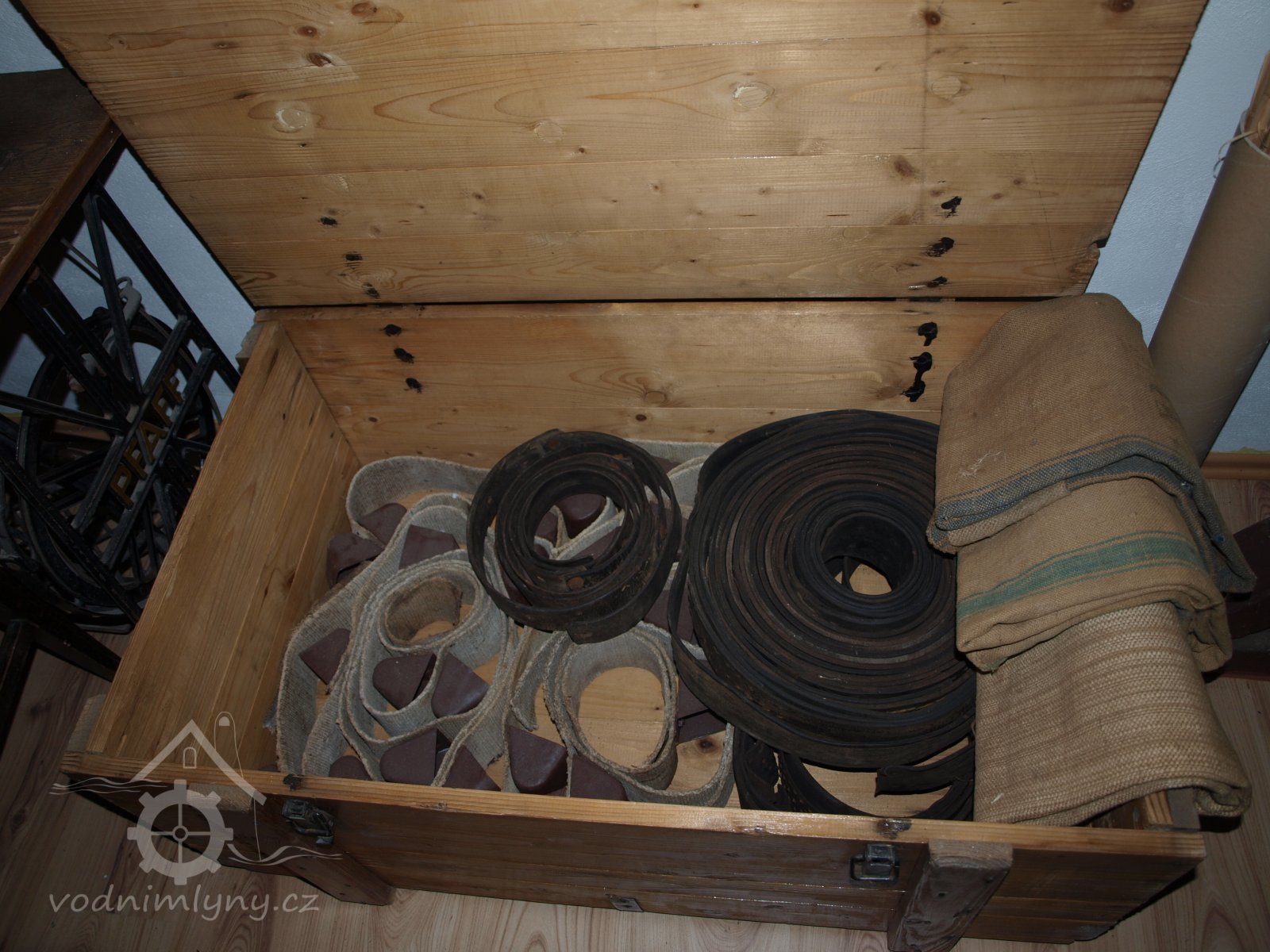 V spodních prostorách mlýna: paleční převod a rozvodové transmise, paty kapsových výtahů