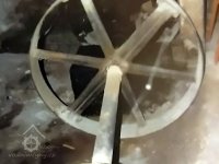 Vodní kolo na vrchní vodu v kamenné lednici mělo plechové korce