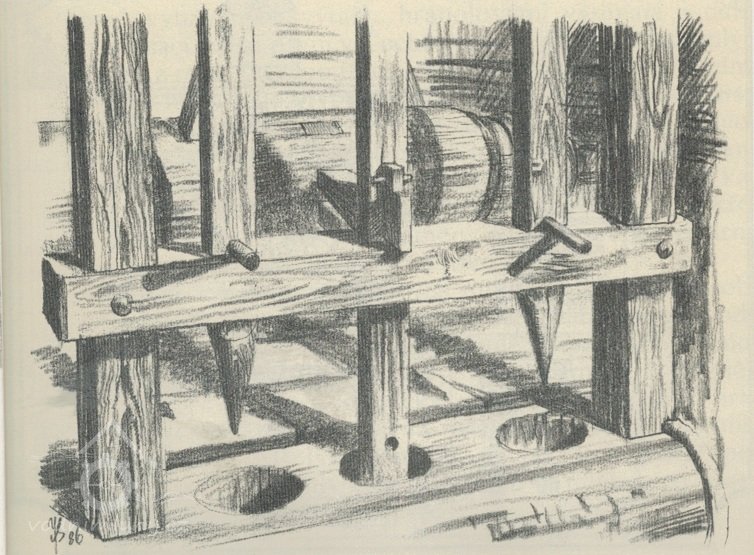 „Příprava jahelky dala hodně práce, proto jsme u nás dělali jáhly jen v zimě. Spodek jahelky byl zhotoven z mazníku dodávaného jedním kamnářem ve velkých cihlách, uchovávaných ve vlhkém sklepě. Více cihel se na měsíc dalo do vlhkých plev, aby nasákly vlhko, a pak se z nich krájel velkým nožem plát za plátem a tyto pláty se přitloukaly na dřevěné kolo, připevněné na vyřazeném mlýnském kamenu - spodku. Mazník jsem přitloukal kladívkem do výšky 15 až 20 cm. Když bylo celé kolo tohoto spodku hotové, muselo se hoblíkem srovnat do vodováhy. Pak jsme jej nasadili jako spodek, nad něj lehký běhoun, lub a na to pak koš. Mazník vydržel jednu zimu a pak se dělal nový.”