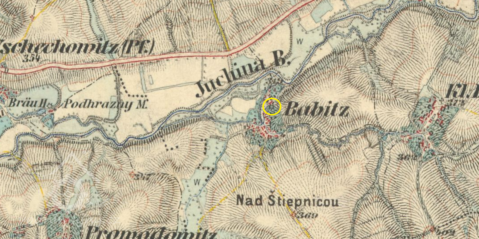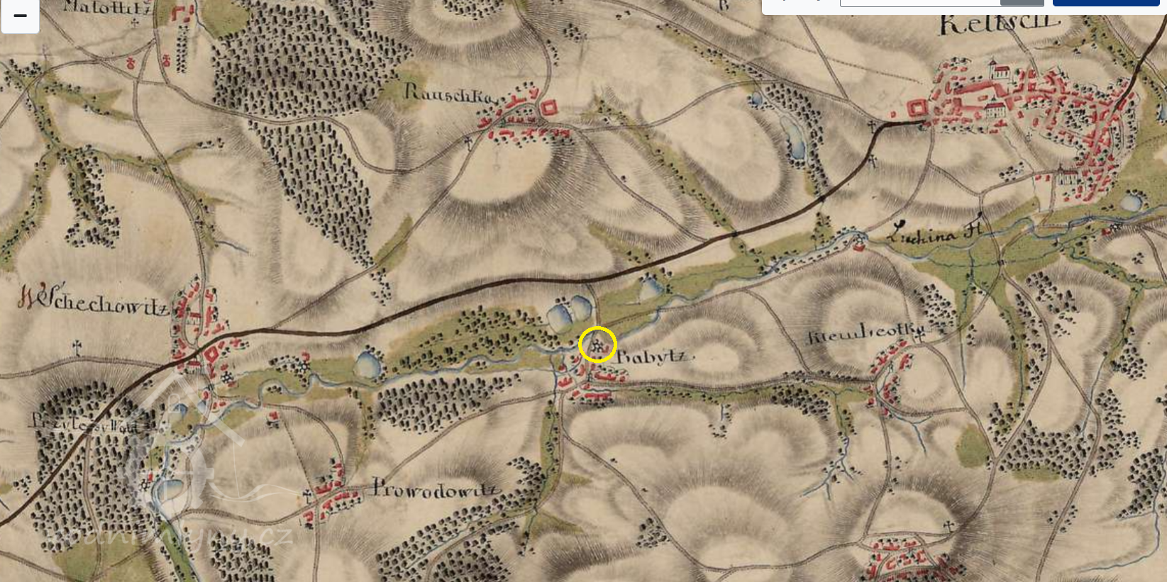 1750 připomínán mlýn a rybník, majetek olomouckého arcibiskupství