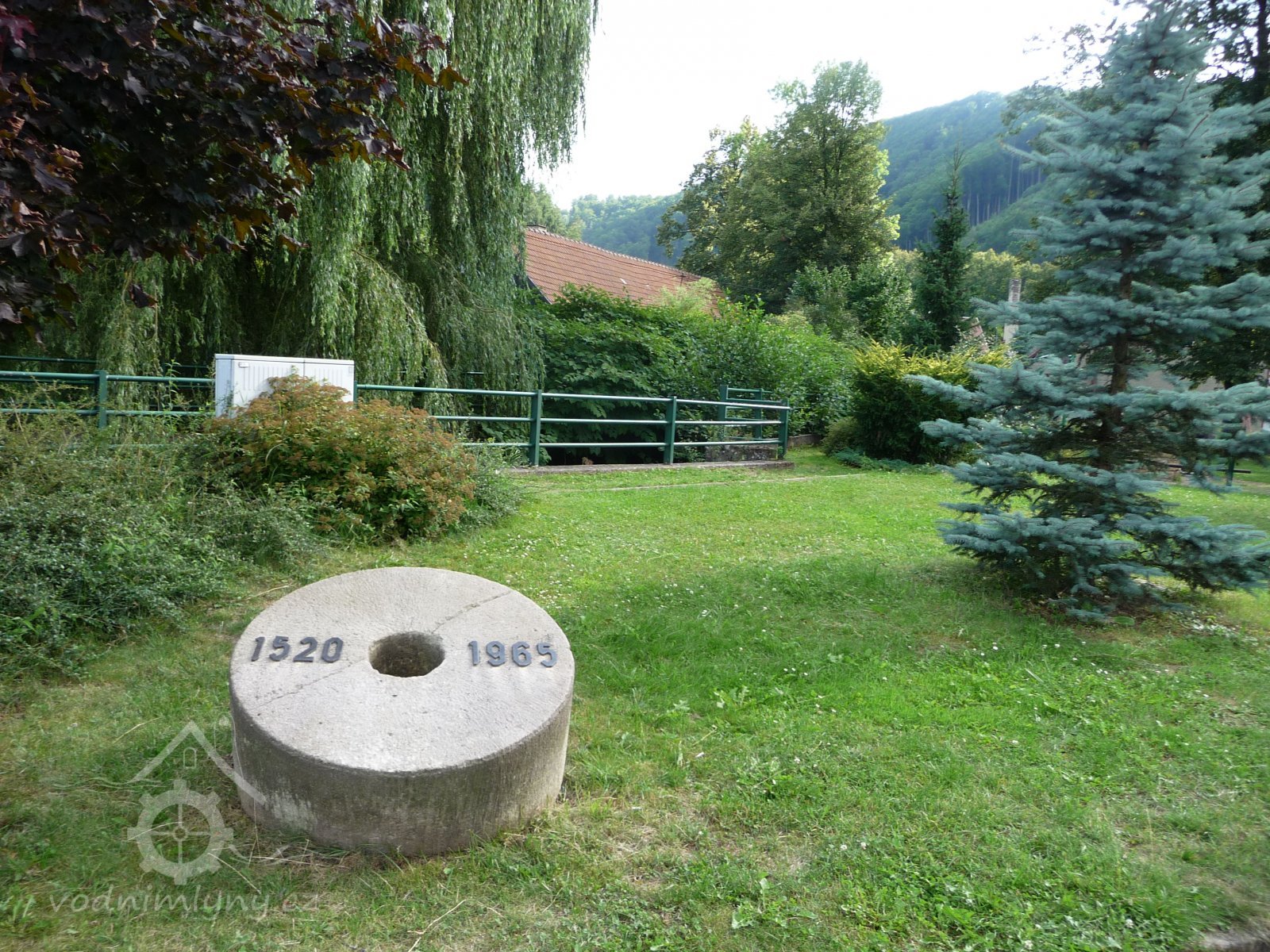 Vpravo od mostku přes náhon stával mlýn založený kolem roku 1520 v době hospodářského rozkvětu, když byl Potštejn součástí východočeské domény Pernštejnů. Koncem 19. století patřil mlýn panu Václavu Šabatovi, který na náhonu u mlýna zřídil první jednoduché „lázně“. Mlynář Šabata byl též obecním starostou a zasloužil se o výsadbu lipové aleje podél řeky. Počátkem 20. století byly ve mlýně instalovány dvě turbíny, které dodávaly elektřinu do zámku a pro veřejné osvětlení. Mlýn byl v provozu ještě ve 40. letech minulého století. Budova mlýna omezovala silniční provoz, a proto byla roku 1965 zbořena a prostranství upraveno v parčík. Připomíná ji mlýnské kolo s daty vzniku a zániku mlýna.