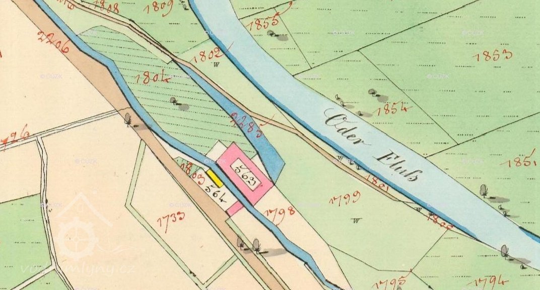 V roce 1836 vlastnil mlýn dle indikační skici Telzig (Teltschik) Josef.