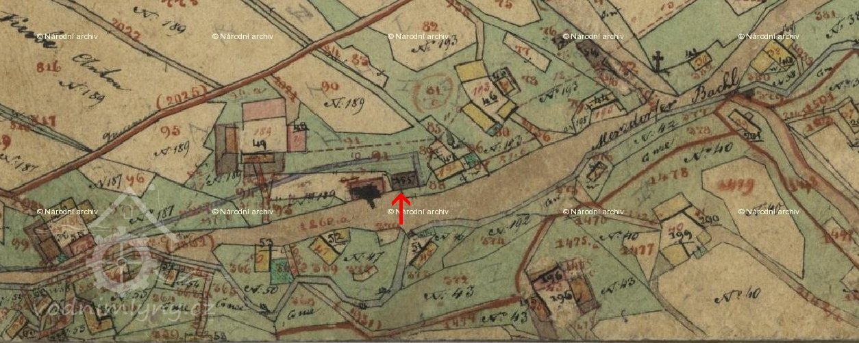 Mlýn vznikl až po roce 1840. Je vyobrazen pouze na Indikační skice, na Císařském otisku chybí.