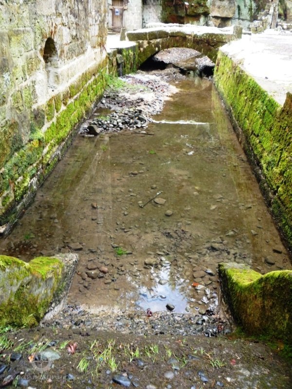 Východně od mlýna přehrazuje vodní tok jez z hrubě otesaných pravidelných kamenných kvádrů.