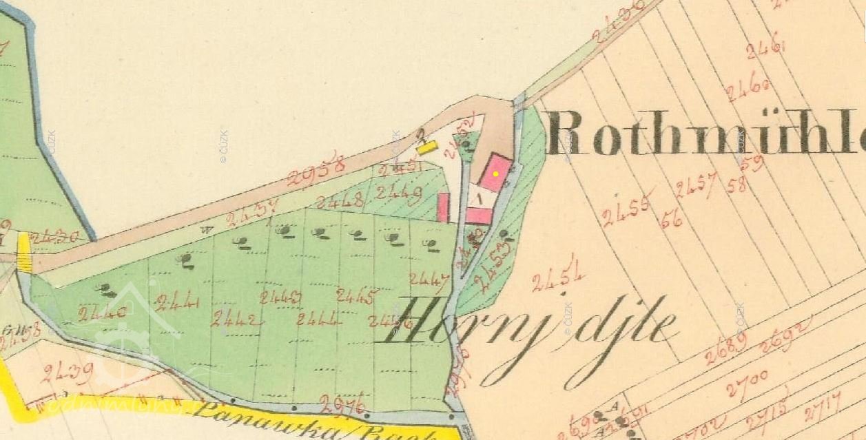 Mlýn je uváděn na historických mapách a na letecké fotgrafii z r. 1952.