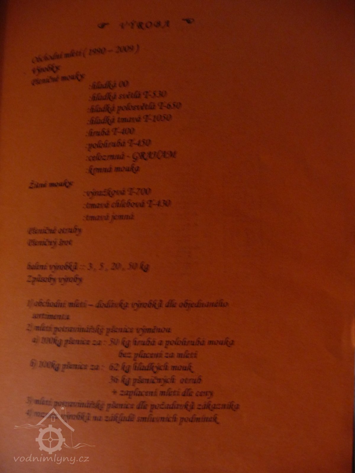V průběhu mletí 1990-2014 cca přes 200 stálých odběratelů , pekárny, vývařovny, lázeňské hotely, drobní odběratelé, domácnosti, výrobci krmiv atd. R. 2013-2015 opadnutí zájmu o mletí - důvod: centralizace dodávek třeba, přísnější zbytečné normy výroby - zavřen v červnu 2014 z důvodu nezájmu zákazníku o klasické a kvalitní mlýnské výrobky.