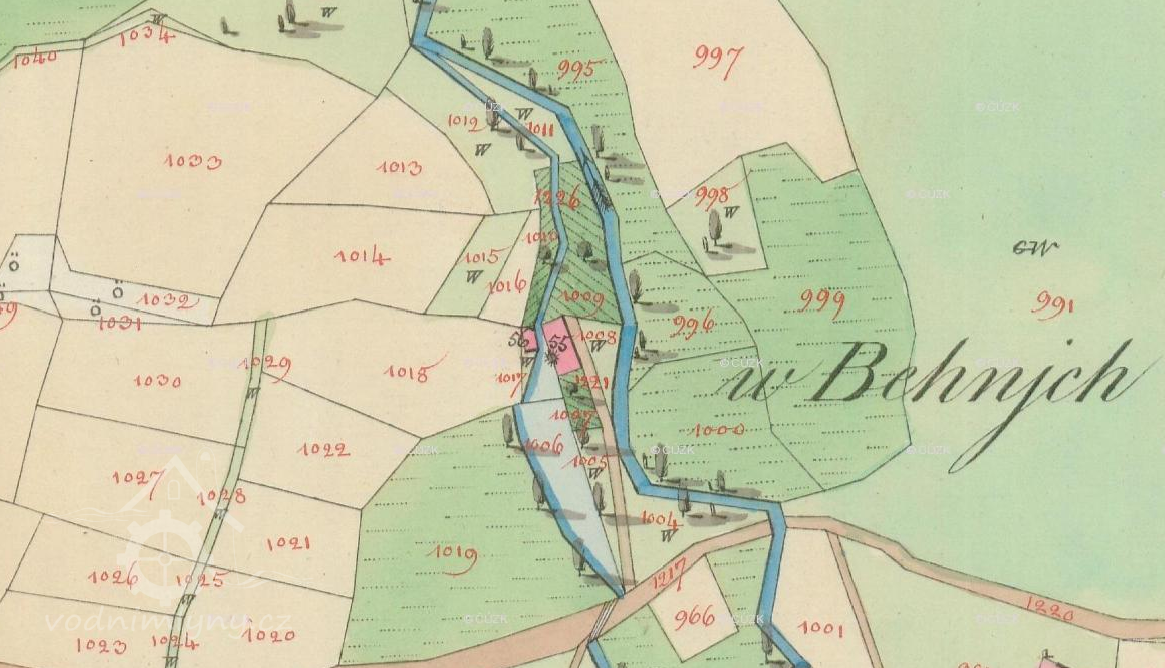 PopisV roce 1930 měl mlýn jedno kolo na svrchní vodu, průtok 0.091 m3/s, spád 4 m, výkon 3.1 HP
