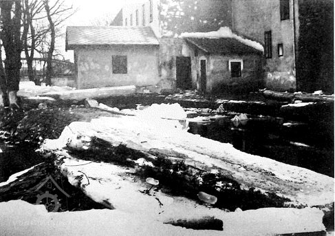 Velká voda a dřenice u mlýna, 6.2.1937, © SOkA Strakonice, ONV Strakonice, inv.č. 1396, kart.č. 880